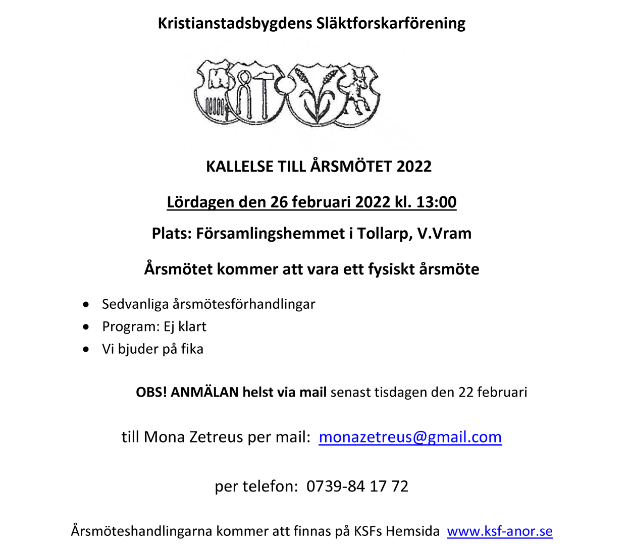KRISTIANSTADSBYGDENS SLÄKTFORSKARFÖRENING