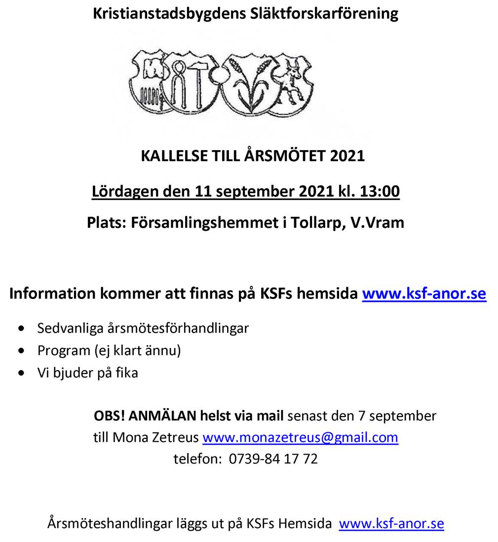 KRISTIANSTADSBYGDENS SLÄKTFORSKARFÖRENING
