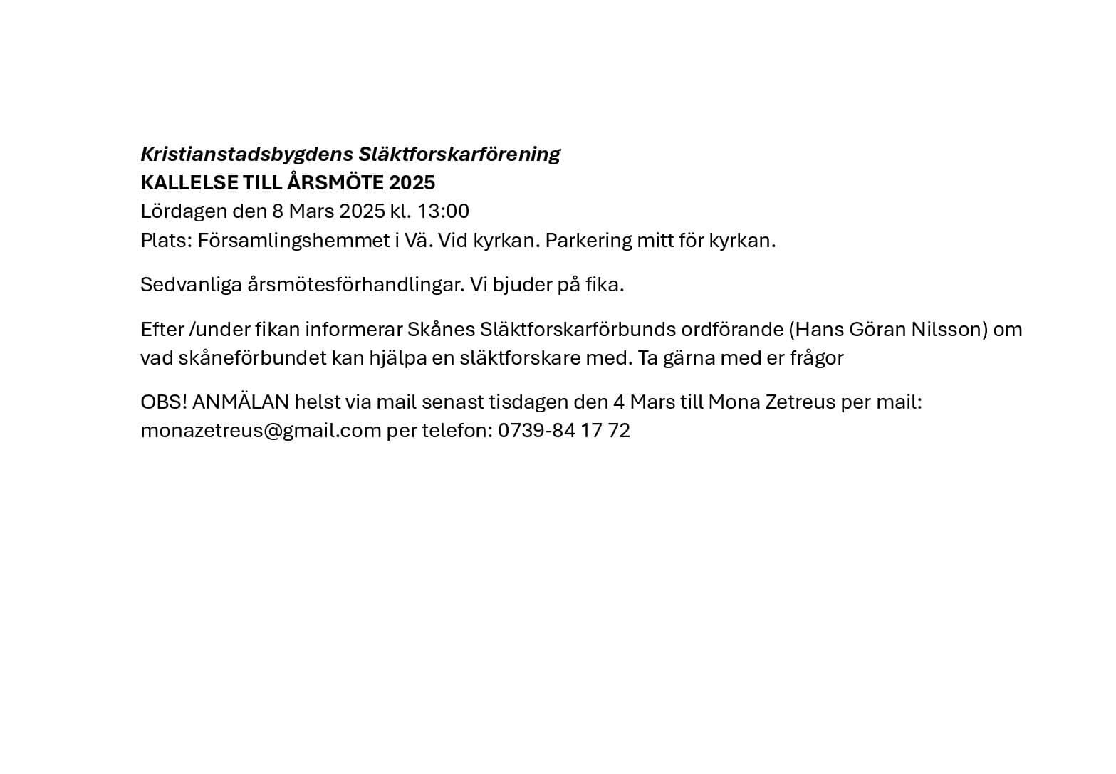 KRISTIANSTADSBYGDENS SLÄKTFORSKARFÖRENING